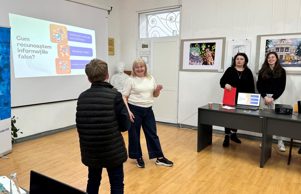 Formatorii Cristina Lupu, Directoare executivă a Centrului pentru Jurnalism Independent din România, și Veronica Boboc, Directoare executivă AO „Centrul Media pentru Tineri” din Republica Moldova, au interacționat cu tinerii prin prezentări captivante, întrebări și răspunsuri, oferind exemple relevante despre impactul manipulării inclusiv asupra percepției față de migranți și refugiați. Elevii au fost încurajați să gândească critic, să analizeze cu discernământ conținutul din spațiul virtual și să valorifice creația artistică drept mijloc de contracarare a prejudecăților.