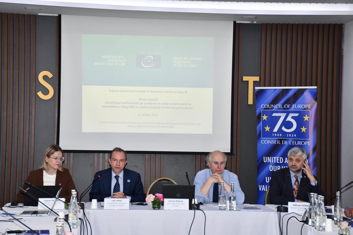 Consolidarea integrității și a standardelor etice atât în sistemul judiciar, cât și în sistemul procuraturii a fost scopul a două mese rotunde, organizate, la 29 și 30 mai 2024, de Oficiul Consiliului Europei la Chișinău, în parteneriat cu Institutul Național al Justiției.