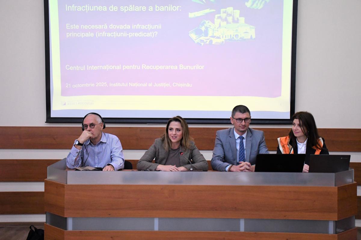 Audienții Institutului Național al Justiției – candidați la funcțiile de judecător și de procuror din promoțiile a XVIII-a și a XIX-a – au participat marți, 21 octombrie 2025, la o lecție publică dedicată infracțiunii de spălare a banilor. Activitatea, susținută în limba engleză de David Mattan, expert al Centrului Internațional pentru Recuperarea Bunurilor (ICAR), a oferit o viziune practică și teoretică asupra modului de investigare și sancționare a acestei infracțiuni, în conformitate cu standardele internaționale și legislația națională.