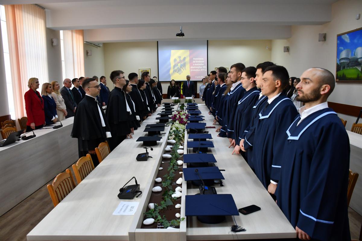 Festivitatea a culminat cu înmânarea atestatelor de absolvire. De asemenea, diplome cu mențiuni de lider al promoției a XVI-a au primit Ecaterina Soroceanu, candidată la funcția de judecător, Nelea Postu, candidată la funcția de judecător, și Doina-Cezara Galan, candidată la funcția de procuror; diplome de merit, drept recunoaștere a performanțelor deosebite obținute pe parcursul formării inițiale – Elena Fortuna și Constantin Cogălniceanu, candidați la funcția de judecător, Valentin Lungu și Sergiu Colesnic, candidați la funcția de procuror; diplome de merit pentru spirit organizatoric deosebit în activitatea de șef de grupă – Doina-Cezara Galan, candidată la funcția de procuror, și Ecaterina Soroceanu, candidată la funcția de judecător.