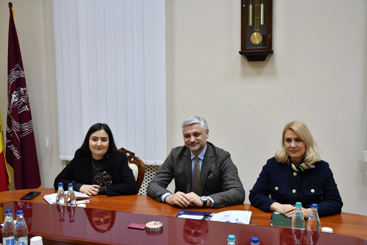 Luni, 2 decembrie 2024, dumnealui, însoțit de membrii Consiliului director: Gheorghe Avornic, Rector al Universității de Studii Politice și Economice Europene „Constantin Stere”, și Maxim Lebedinschi, Președinte al Uniunii Juriștilor din Republica Moldova, s-a întâlnit cu Adrian Cerbu, Director interimar al Institutului Național al Justiției, Ecaterina Popa, șefă a Direcției instruire și cercetare, și Tatiana Brumă, șefă a Secției e-instruire.