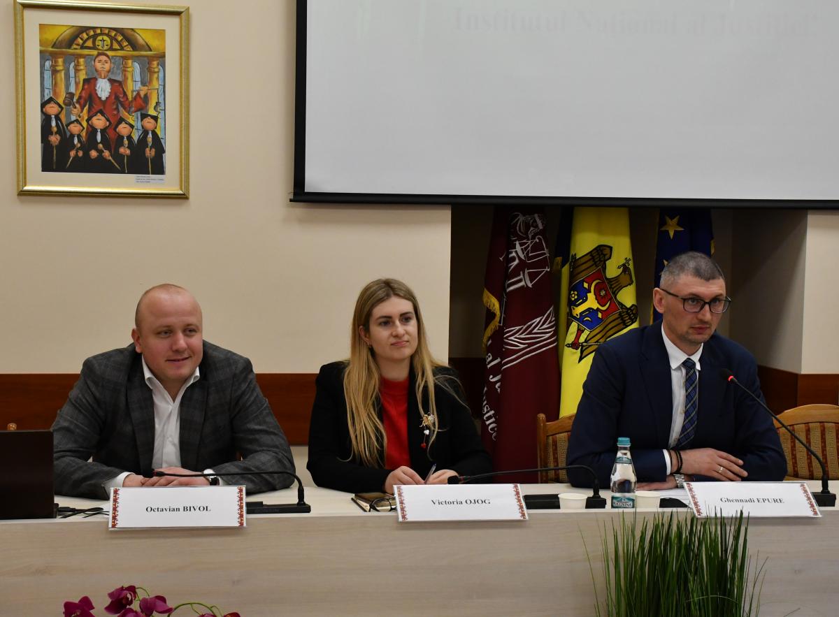 The audience experience was shared by Dan Furculita, candidate for the position of prosecutor, and Svetlana Brătescu, candidate for the position of judge, who spoke about the particularities of the training activities, as well as about the challenges and opportunities of this professional stage. The students also had the opportunity to interact with the graduates of the Institute - Octavian Bivol, seconded prosecutor and head of the continuing training Section, and Victoria Ojog, candidate for the position of judge and main specialist in the initial training Section - who spoke about their own professional path, the experience gained and the relevance of the training offered by the Institute.