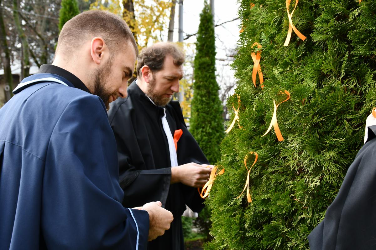 The end of November marks, at an international level, the period when attention is directed to the prevention of gender-based violence. The National Institute of Justice is also joining the "16 Days of Activism Against Gender-Based Violence" campaign this year. As a sign of solidarity, the INJ audience today decorated the fir trees in the courtyard of the institution with orange ribbons – a symbolic gesture that reminds of the importance of empathy, respect, responsibility and support given to those affected by violence.