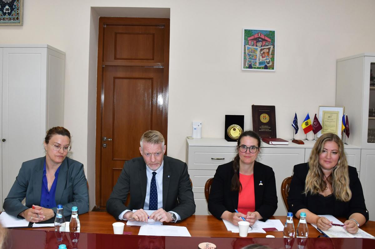 this week, a delegation from the Swedish National Courts Administration (SNCA) is in Chisinau, on a documentation mission to explore the possibilities of a future collaboration including with the National Institute of Justice. Today, June 25, 2025, the director of the INJ, Ramona Strugariu, received the head of the SNCA International Relations Unit, Ludvig Becking, and the legal advisers: Pernilla Nordvall and Lina Zettergren, who were accompanied by the program coordinator from the Embassy of Sweden in the Republic of Moldova, Tatiana Lungu. From INJ, the head of the Training and Research Directorate, Ecaterina Popa, and the head of the Continuous Training Section, Octavian Bivol, also participated in the meeting.