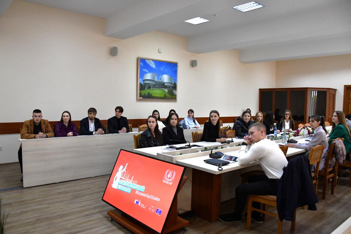 Institutul Național al Justiției a organizat un eveniment public cu genericul „Accesul la cunoștințe juridice și perspectivele profesiei de judecător și procuror în contextul integrării europene”, pentru a marca Ziua Europeană a Justiției. La activitate au participat studenți și masteranzi ai facultăților de drept de la Universitatea de Stat din Moldova, Universitatea Liberă Internațională din Moldova și Universitatea de Studii Europene din Moldova, care sunt și membri ai Asociației Studenților la Drept din Europa (ELSA), precum și un grup de tineri de la Academia „Ștefan cel Mare” a Ministerului Afacerilor Interne.