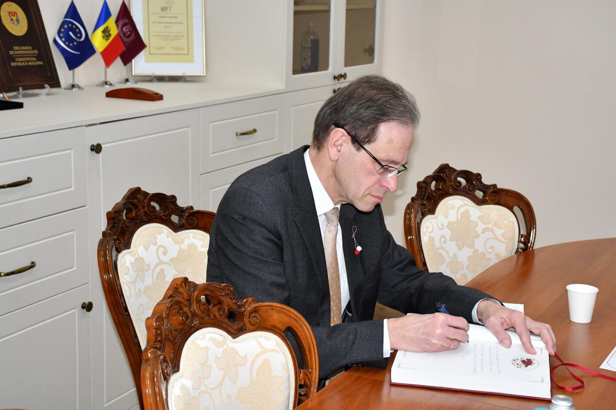 Ambasadorul Republicii Federale Germania în Republica Moldova, Hubert Knirsch, a vizitat joi, 5 martie 2026, Institutul Național al Justiției. Întrevederea cu directoarea Ramona Strugariu și directorul adjunct Ghennadi Epure a constituit un bun prilej pentru a discuta despre activitatea curentă a instituției și rolul său definitoriu în formarea noilor generații de profesioniști din sectorul justiției.