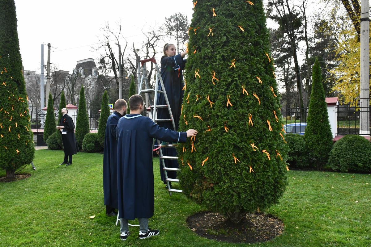 The end of November marks, at an international level, the period when attention is directed to the prevention of gender-based violence. The National Institute of Justice is also joining the "16 Days of Activism Against Gender-Based Violence" campaign this year. As a sign of solidarity, the INJ audience today decorated the fir trees in the courtyard of the institution with orange ribbons – a symbolic gesture that reminds of the importance of empathy, respect, responsibility and support given to those affected by violence.